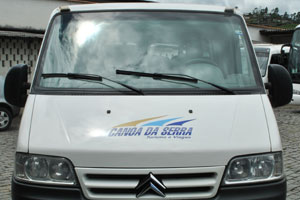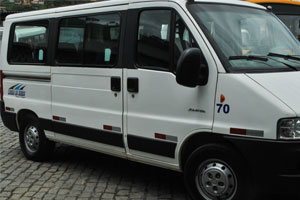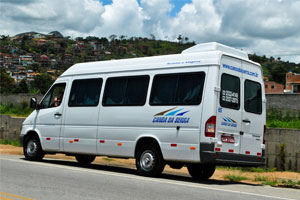 Modelos Jumper e Sprinter, com capacidade para 15 pessoas. Equipadas com ar condicionado, TV, DVD, CD player e poltronas reclináveis.