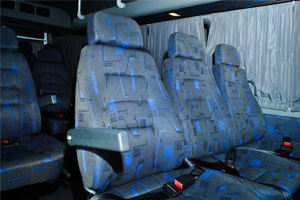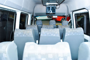 Capacidade para 22 e 27 passageiros. Equipados com ar condicionado, TV, DVD, CD player, microfone, poltronas reclináveis, frigobar e toalete.